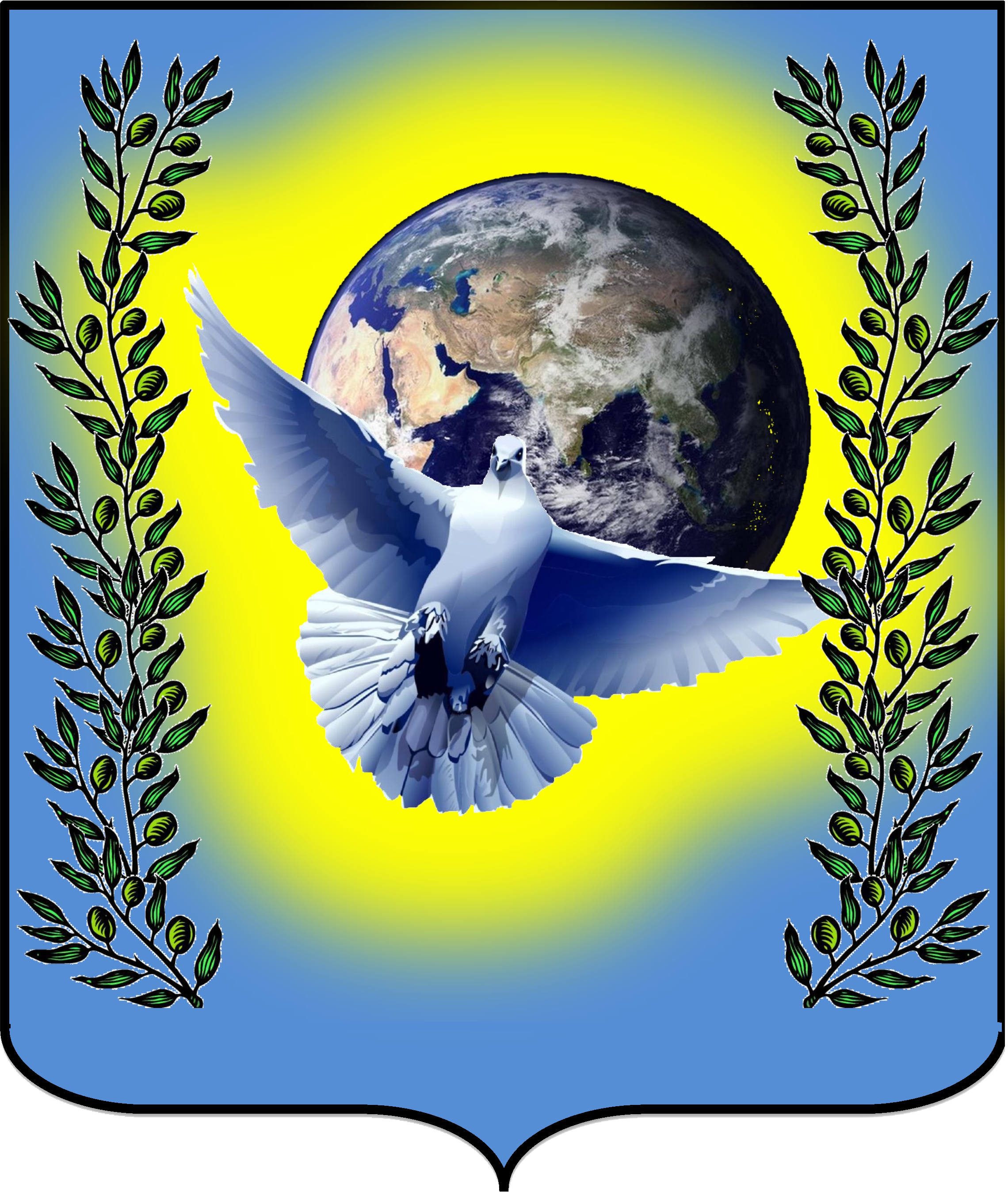 * добровольность вступления в ДОО и активное участие в её делах Законы ДОО: * уважать свою семью, школу, Родину;* знать историю школы, села, Родины и готовиться стать защитником своей страны; * трудиться и бережно относиться к труду других; * учиться и стремиться к интеллектуальному, творческому, физическому и нравственному самосовершенствованию; * беречь, охранять окружающую среду. Девиз ДОО: «Ни дня без доброго дела» Щит герба принят традиционной для российской геральдики французской формы, в виде прямоугольника, с выступающим в нижней части щита остриём и закруглёнными нижними краями Описание: В центре герба изображены голубь, планета земля, оливковые ветви. Трактовка образов: